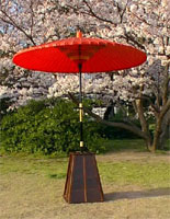 Beautiful red oil parasols are used during theTea ceremony outside (noten gasa 野点傘).
